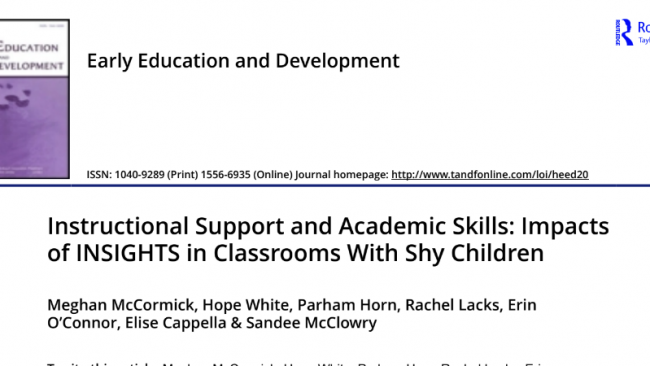 Impacts of INSIGHTS in Classrooms with Shy Children on Instructional and Academic Support